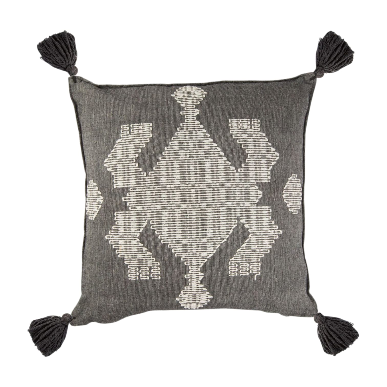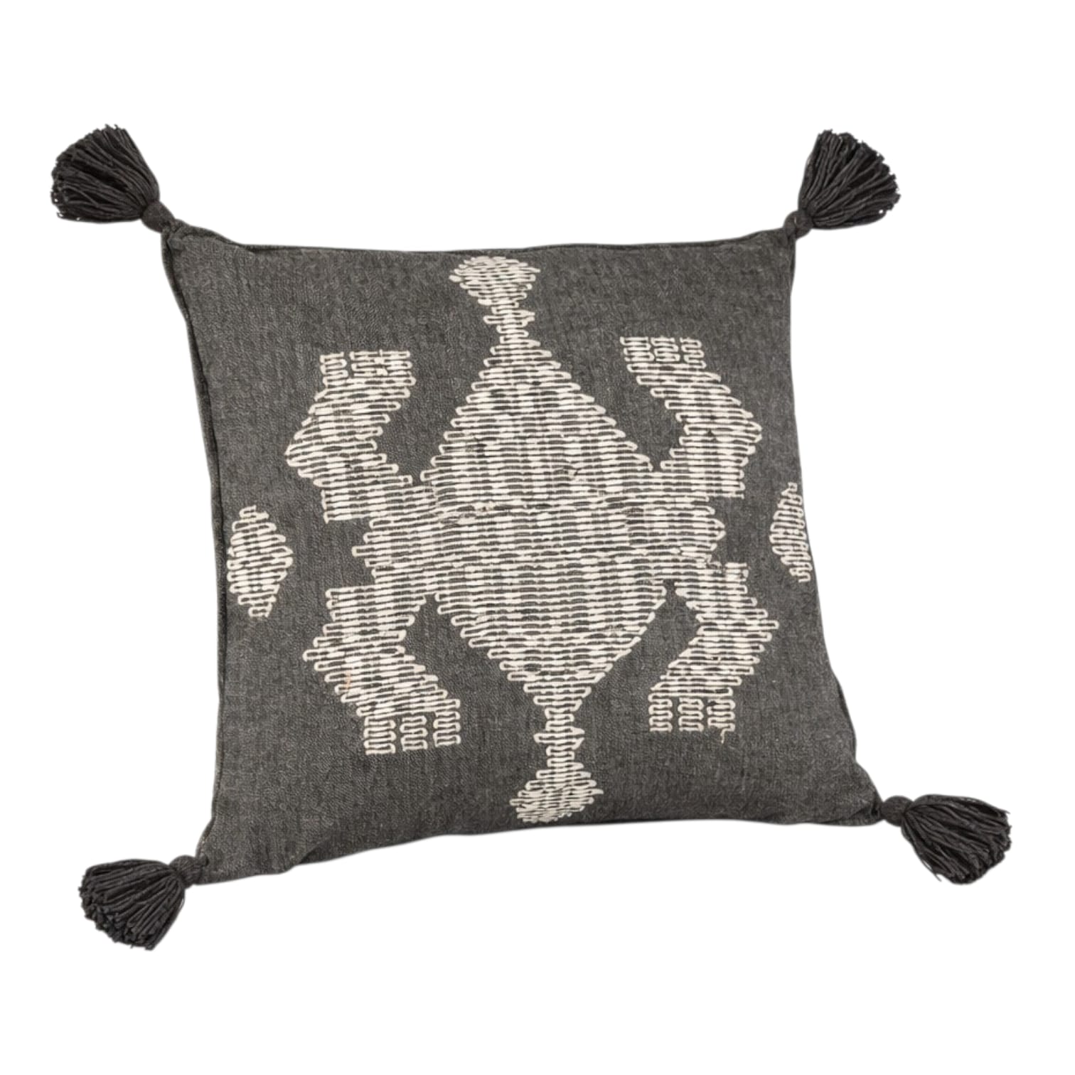 Black Cushion With White Frog And Black Tassels