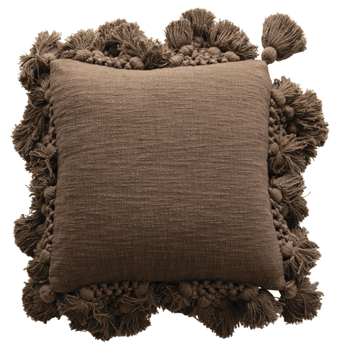 Brown Slub Pillow With Crochet And Tassels