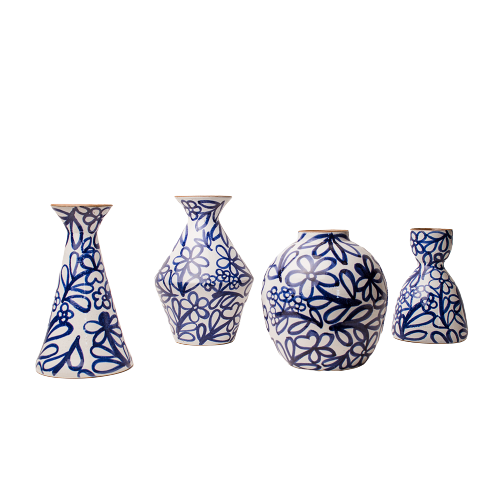 Cobalt Flower Jars Set 4