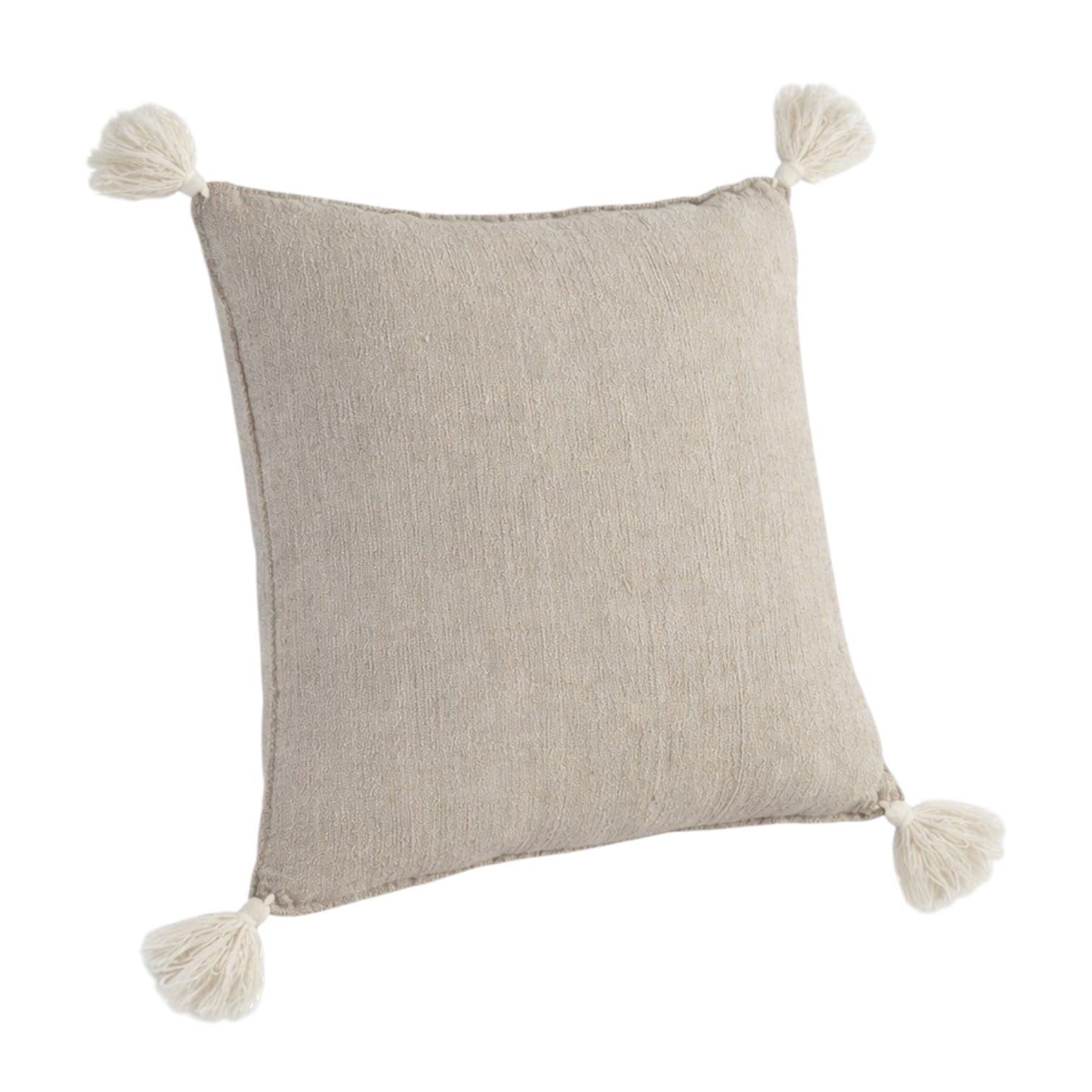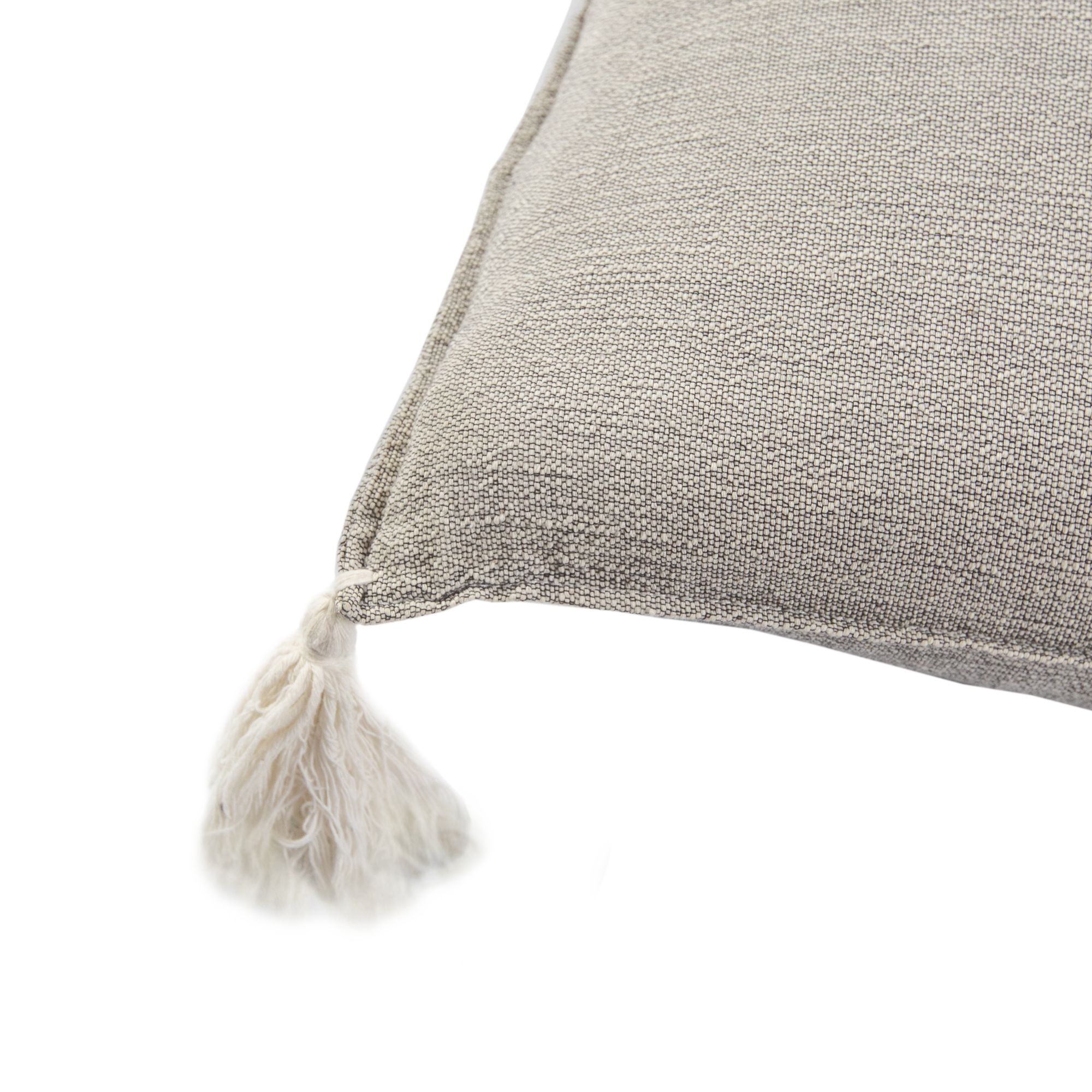 Gray Cushion with Ivory Tassels
