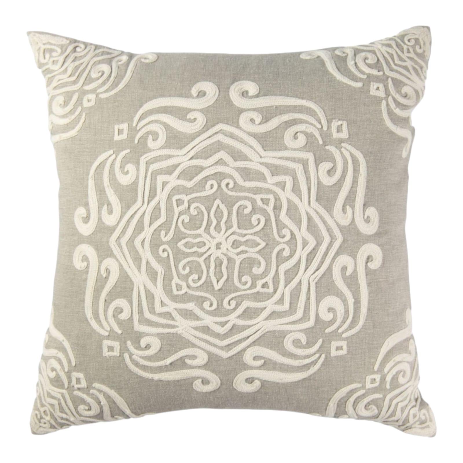 Gray Ethnic Cushion with Mandala Embroidery