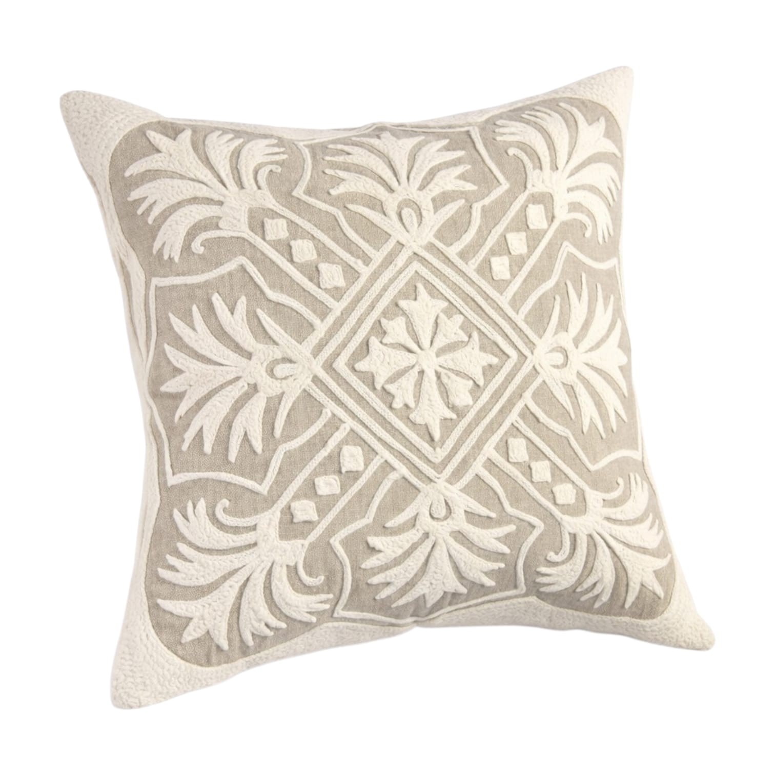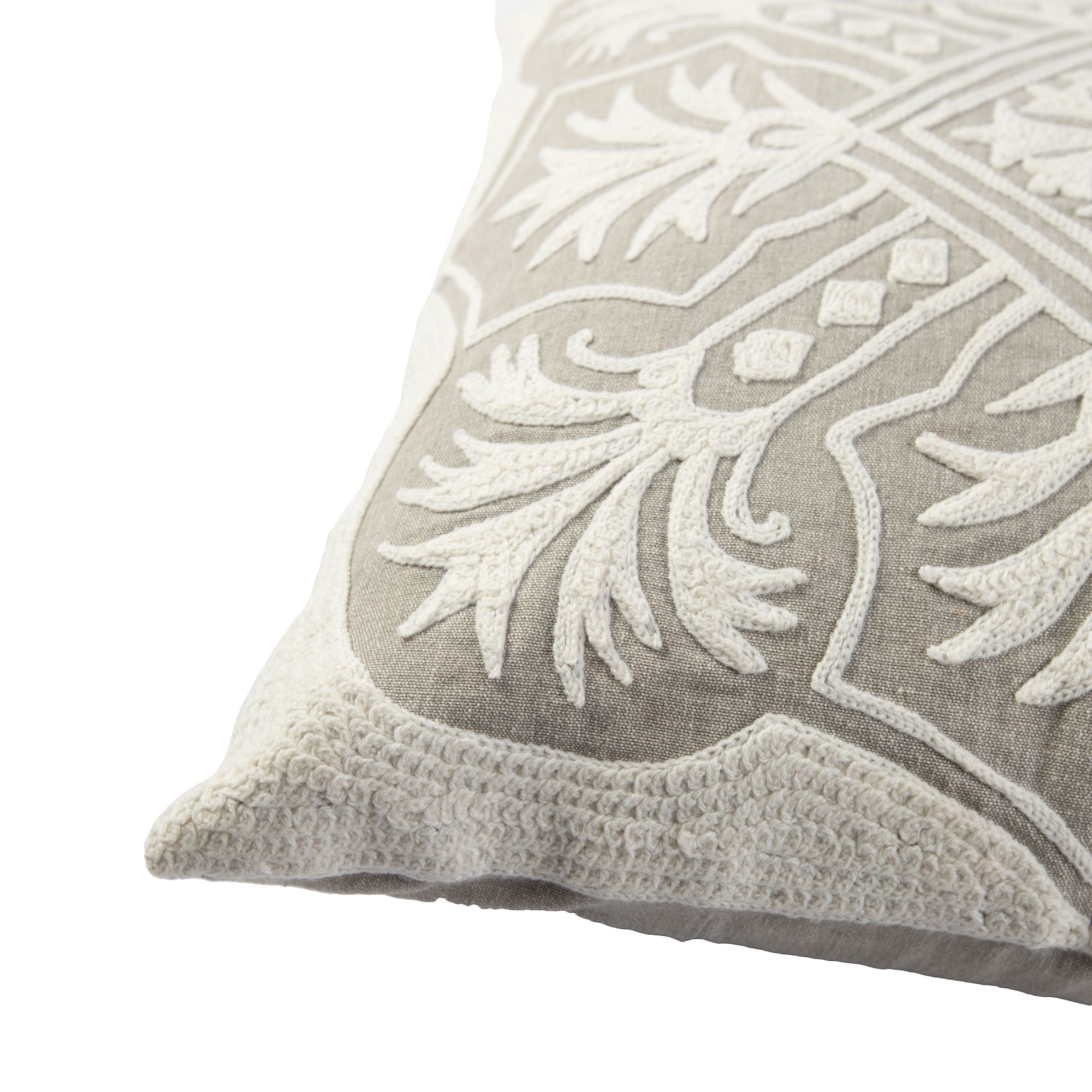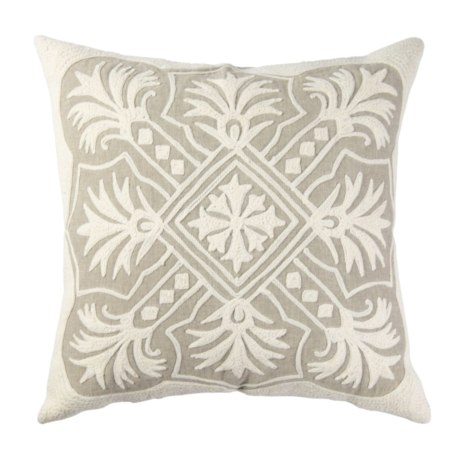 Gray Ethnic Cushion with White Embroidered Cross