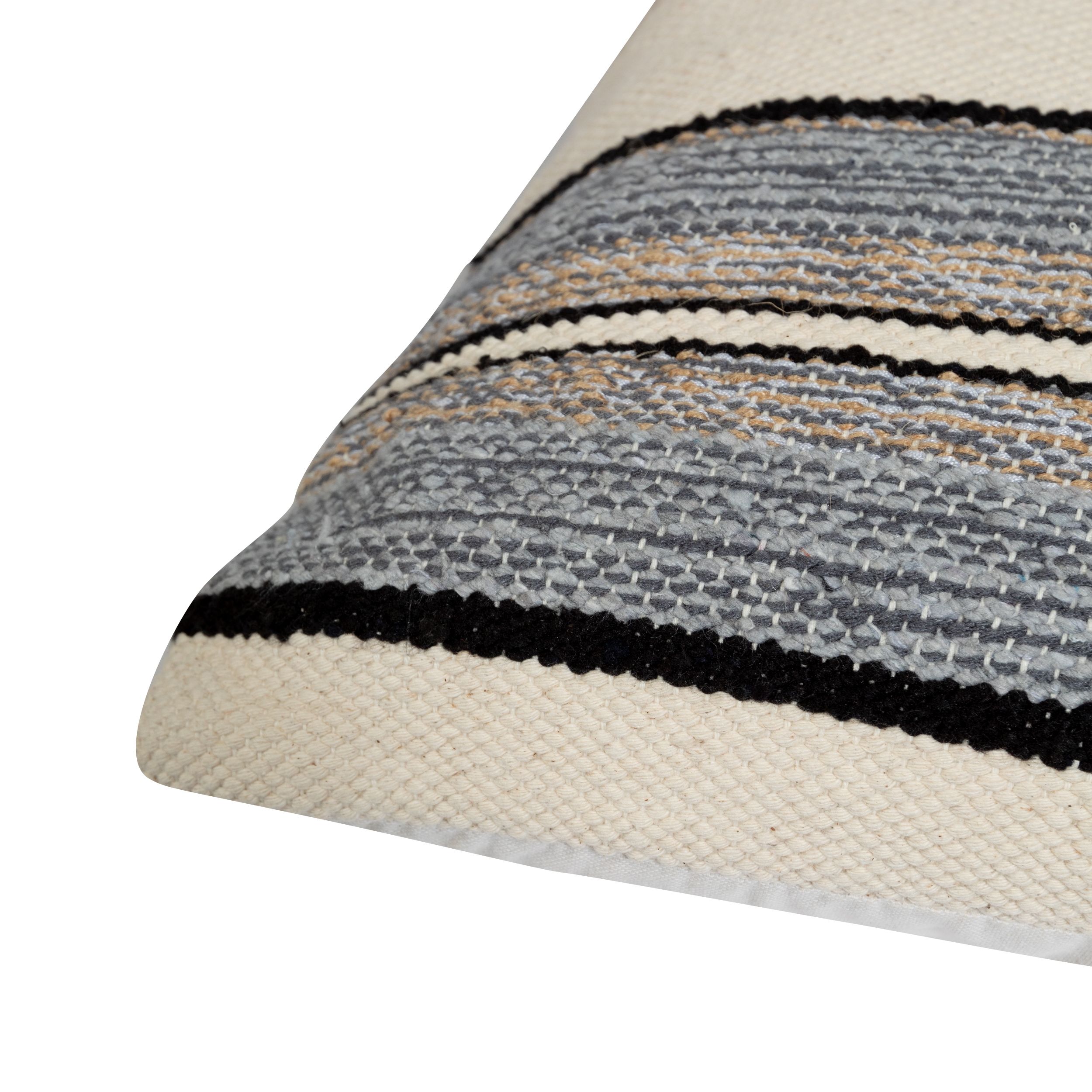 Ivory Ethnic Cushion with Gray Stripes