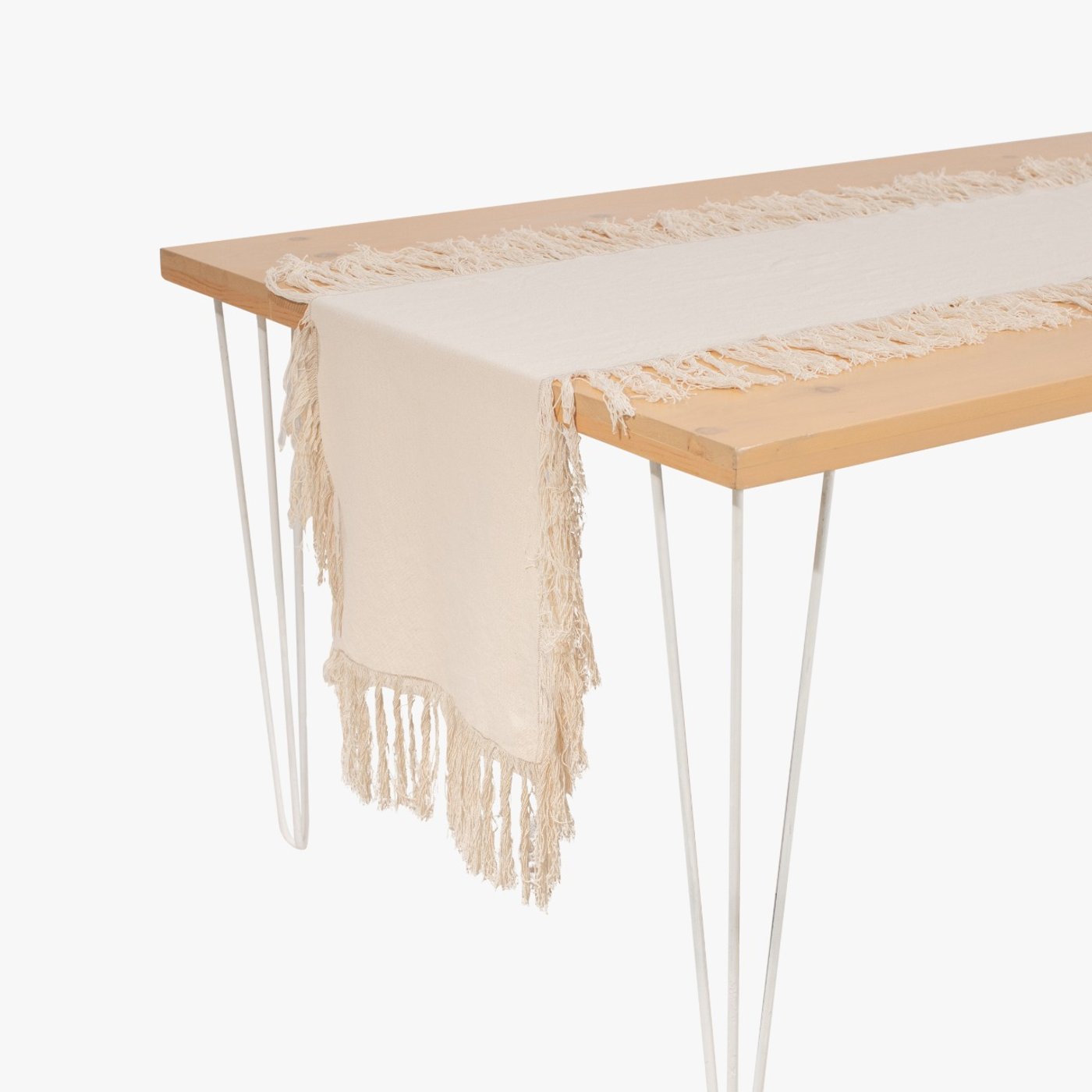 Ivory Long Fringes Table Runner