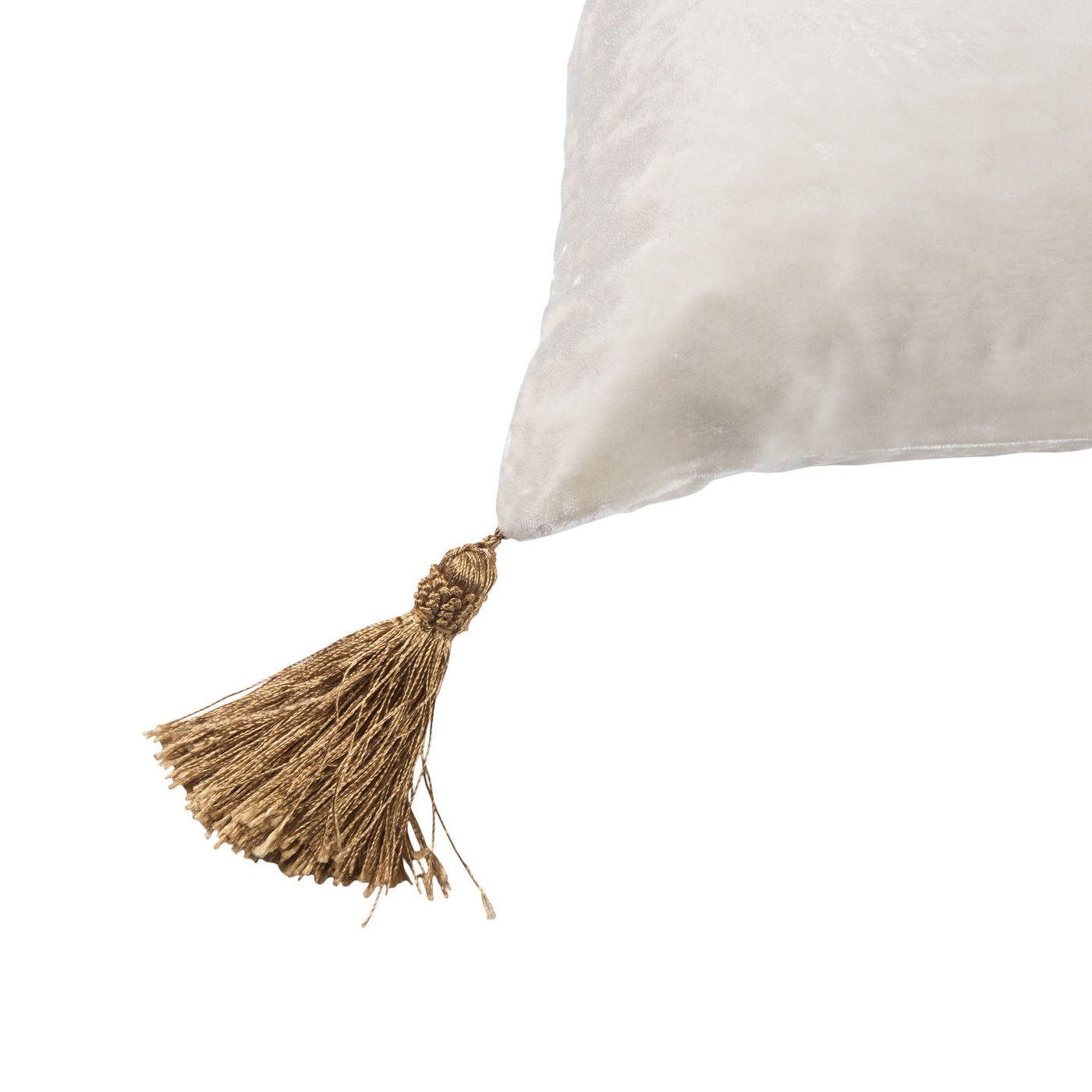 Ivory Velvet Lumbar Cushion with Golden Tassels