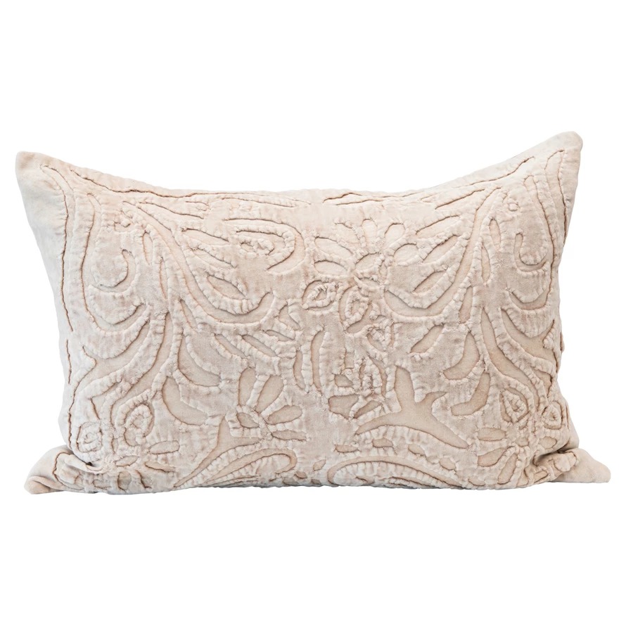 Ivory Velvet Lumbar Pillow with Cutwork