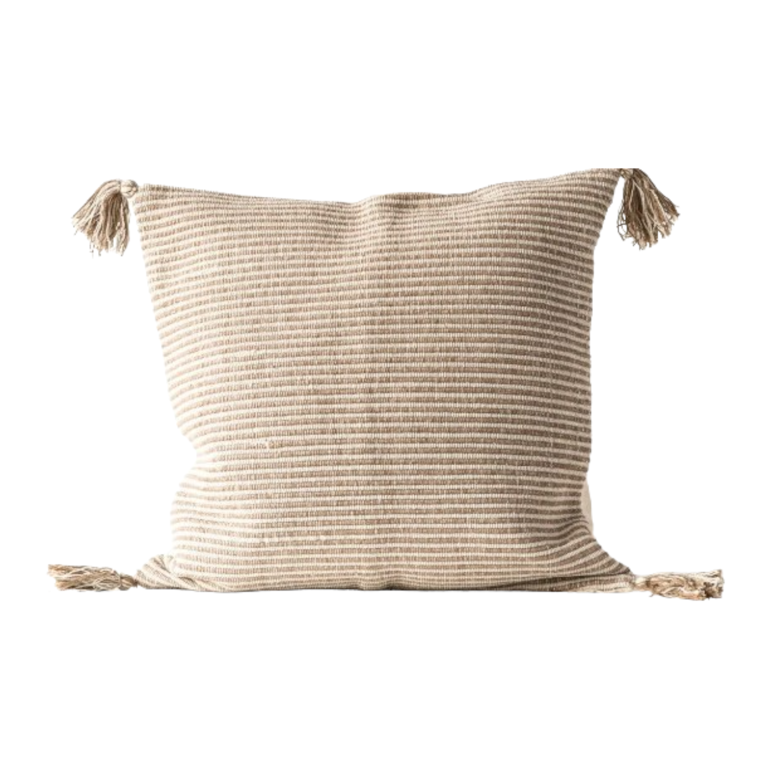 Khaki Striped Pillow with Tassels