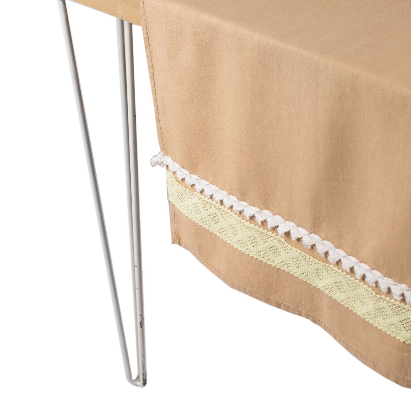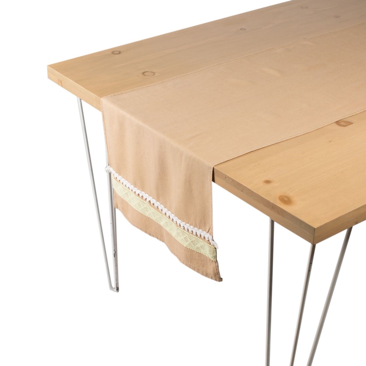 Large Cinnamon Table Runner With White And Mustard Stripes