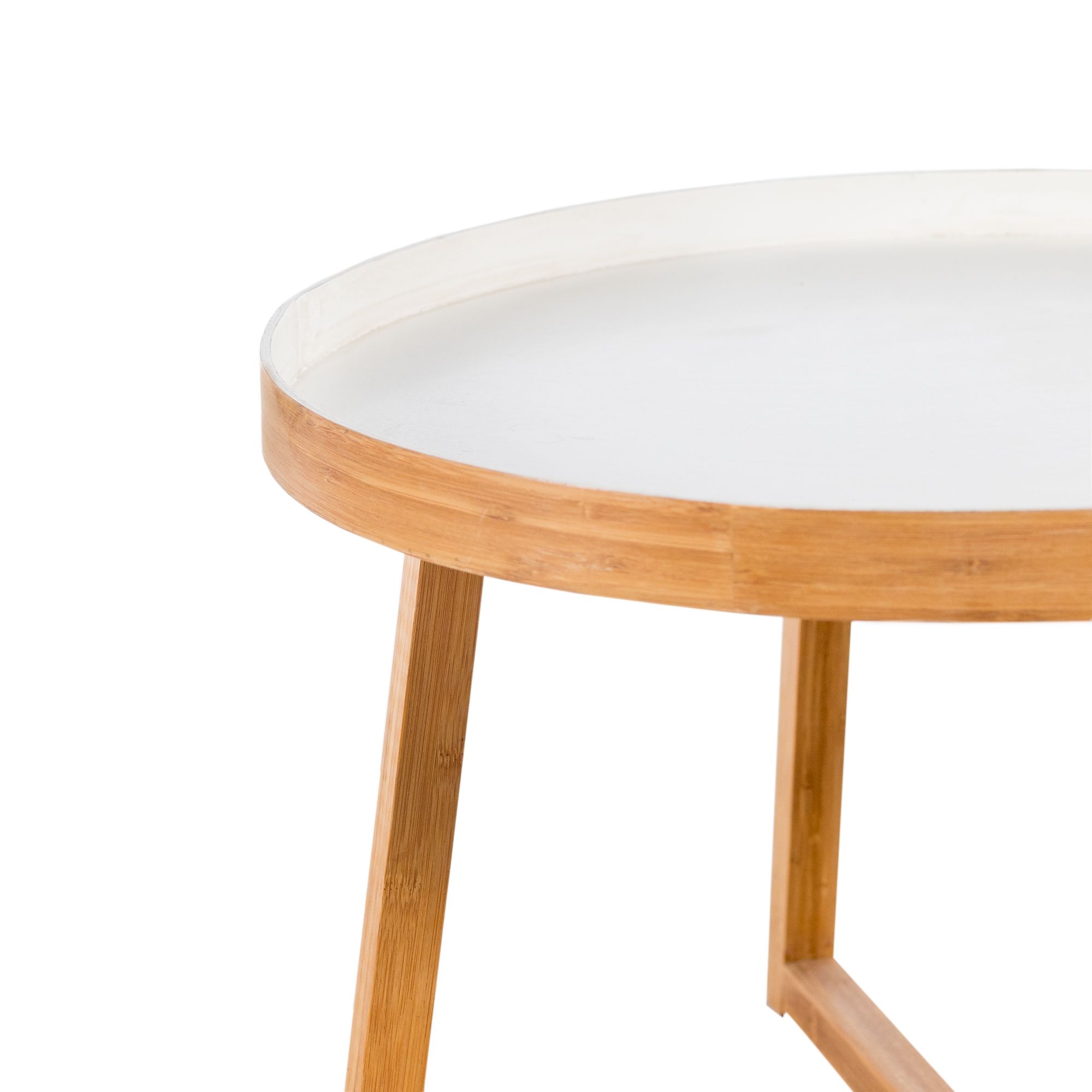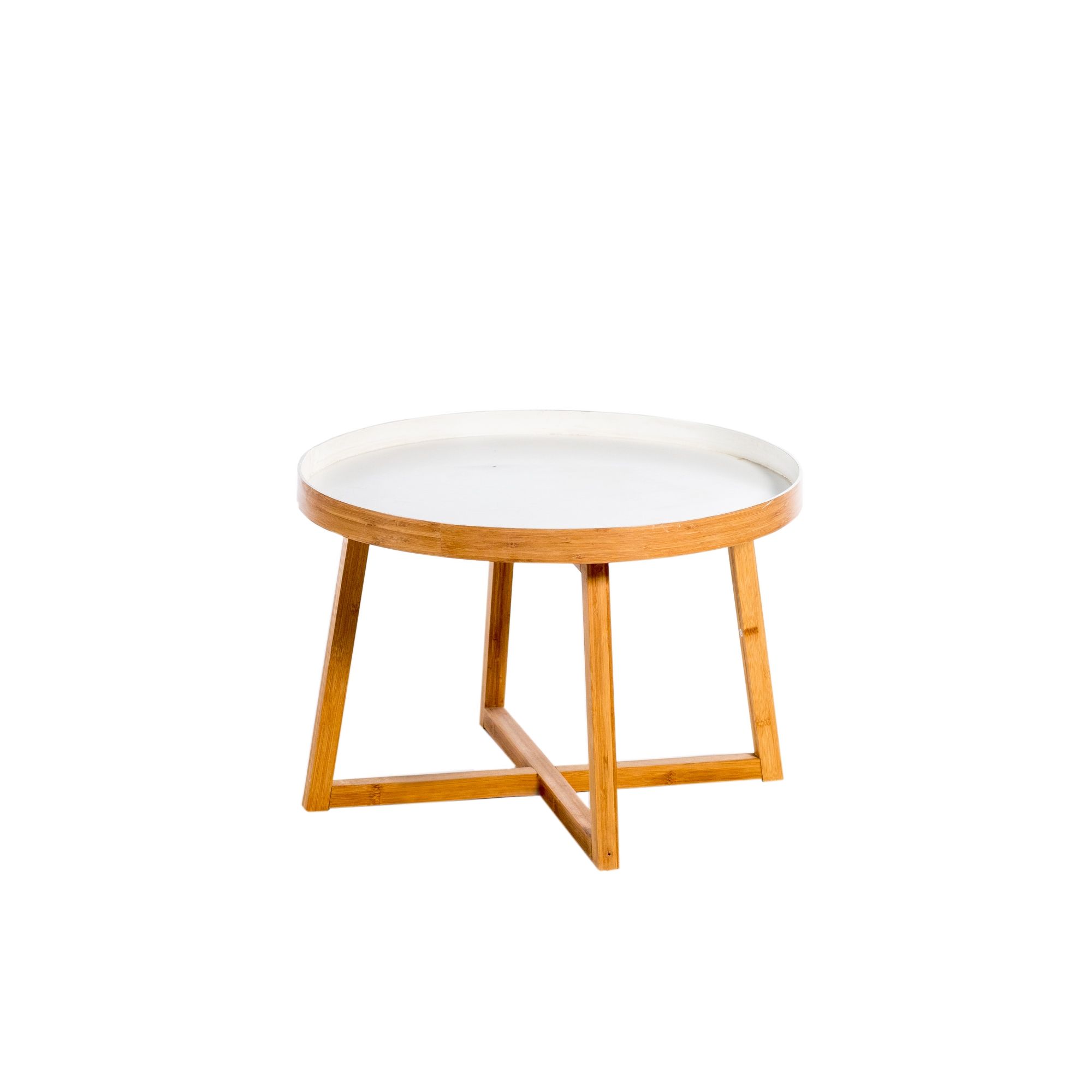 Low Round Bamboo and White Coffee Table